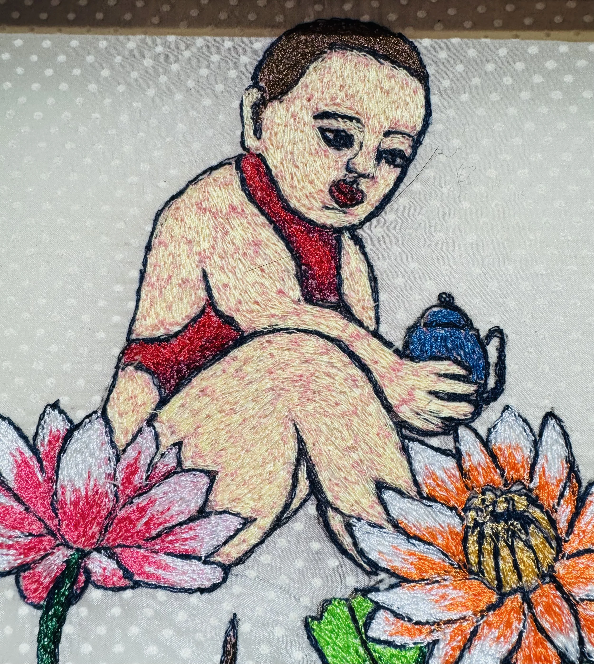 Boy With Lotus is inspired by the story of the Red Boy (Hồng Hài Nhi) from the 16th-century novel, Journey to the West. The Red Boy is portrayed as fiercely independent, possessing the power of True Samadhi- the ability to shoot fire and smoke from his eyes, nostrils, and mouth. Though ultimately subdued by the Buddha, he later attained divine status after saving many lives.